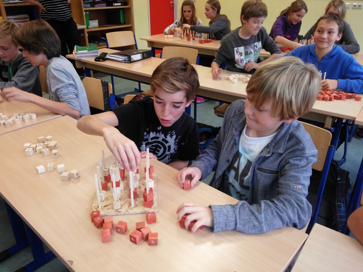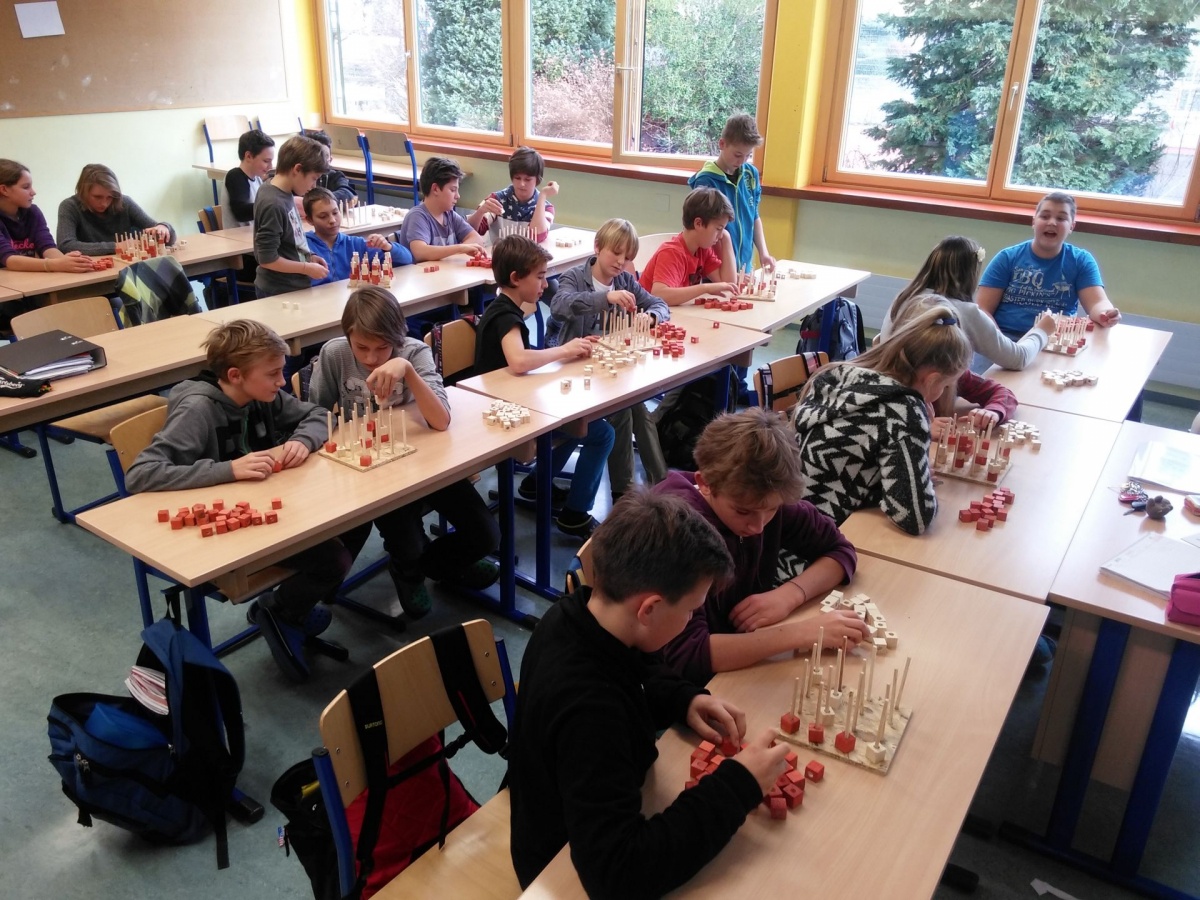 Schlussendlich konnte im Mathematikunterricht dieses räumliche 4-gewinnt-Spiel getestet werden. Die Spielerinnen und Spieler waren sich einig: Ein räumliches Spiel hat so seine Tücken - höchste Konzentration war das Gebot der Stunde; Taktik und vorausschauendes Handeln erfordert eben Übung und Erfahrung!