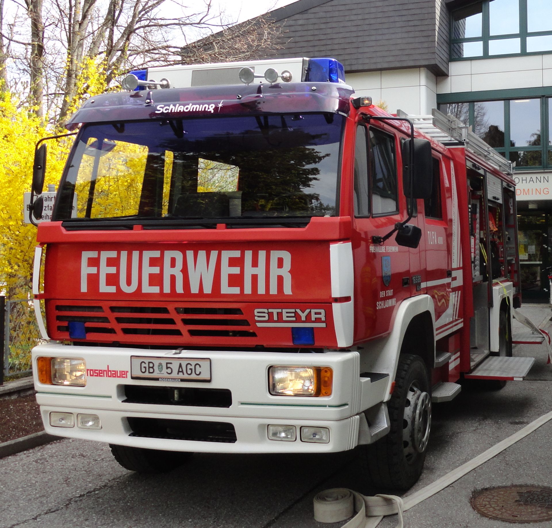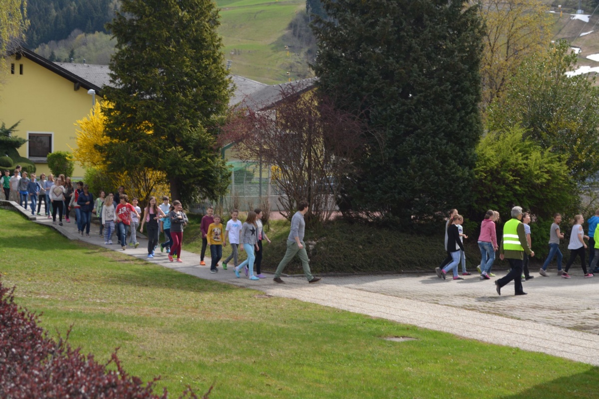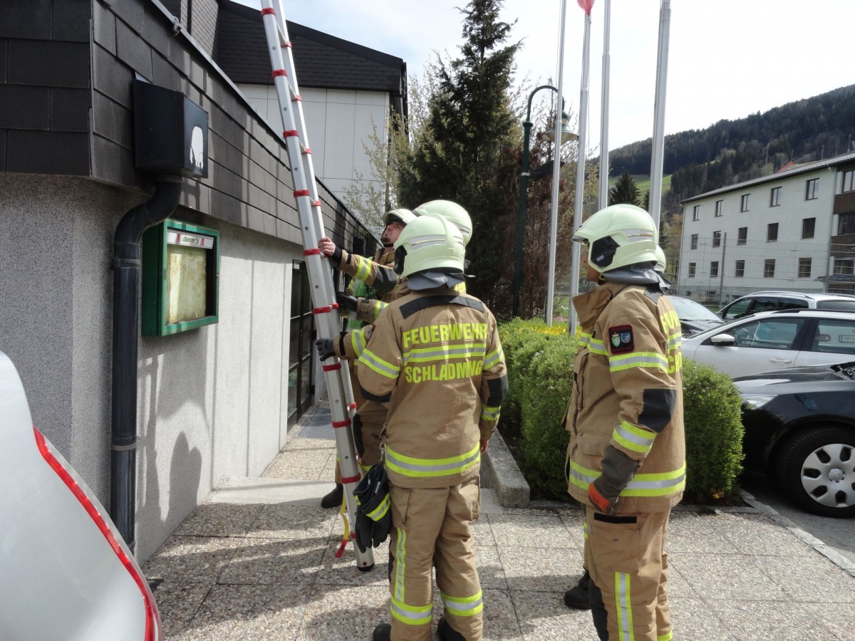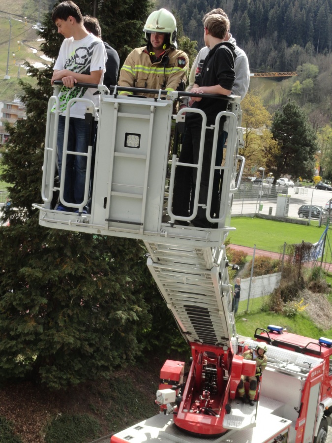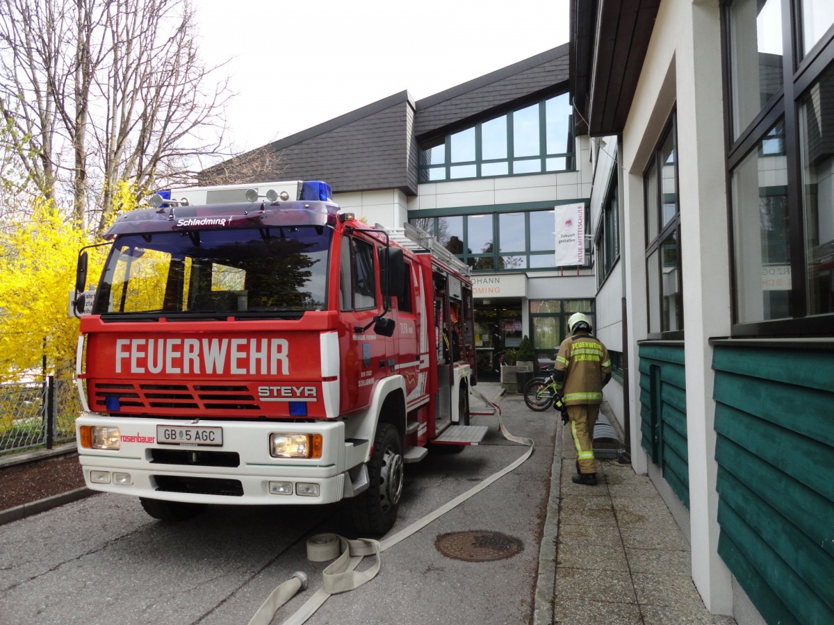 Nach Vorgesprächen mit dem Brandschutzbeauftragten Walcher Hans, der FF Schladming (Kommandant HBI Sieder Roman, Zugskommandant BM Barthelme Toni jun.) und der Schule war es um 11.30 Uhr soweit.