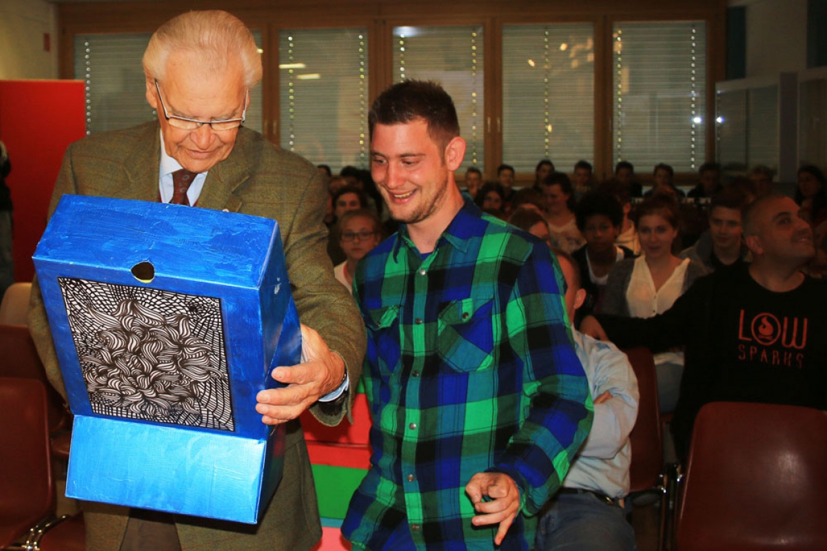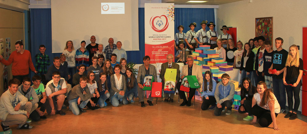 Am 19.Mai wurden in der Aula der Schule dem Special Olympics Präsidenten von Österreich, Herrn Hermann Kröll persönlich, im Rahmen einer eindrucksvollen Feier die Geschenkkartons übergeben.