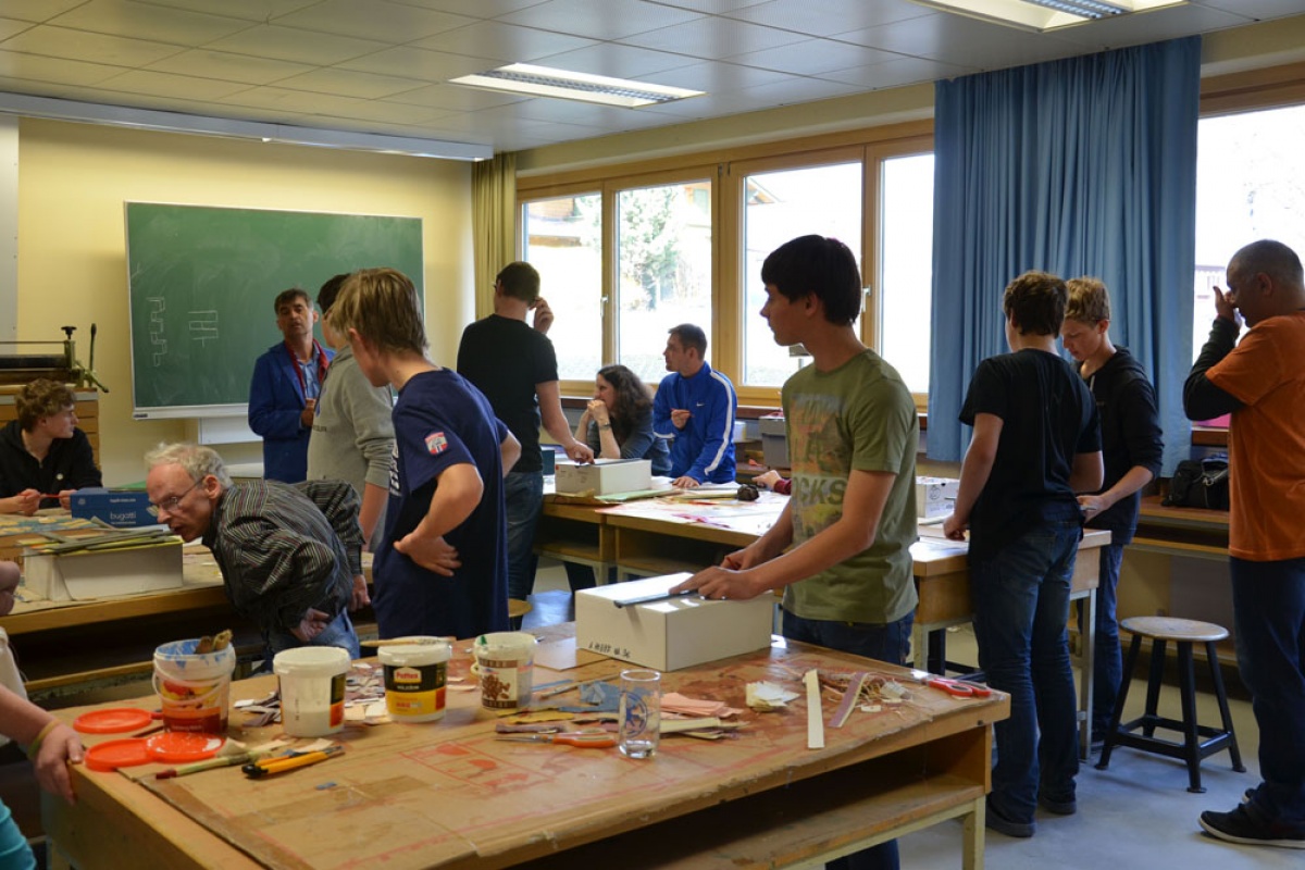 Gemeinsam wurden Geschenkkartons für die Maskottchen der Olympischen Spiele LARA und LUIS gestaltet. An vier Tagen trafen sich die Arbeitsgruppen in den Werkräumen der NMS EJ, um 70 originelle und repräsentative Verpackungskartons herzustellen.