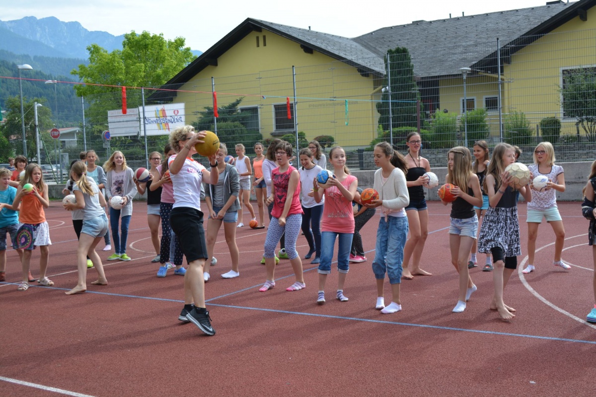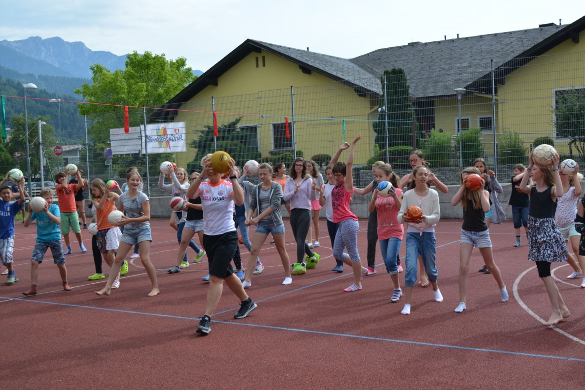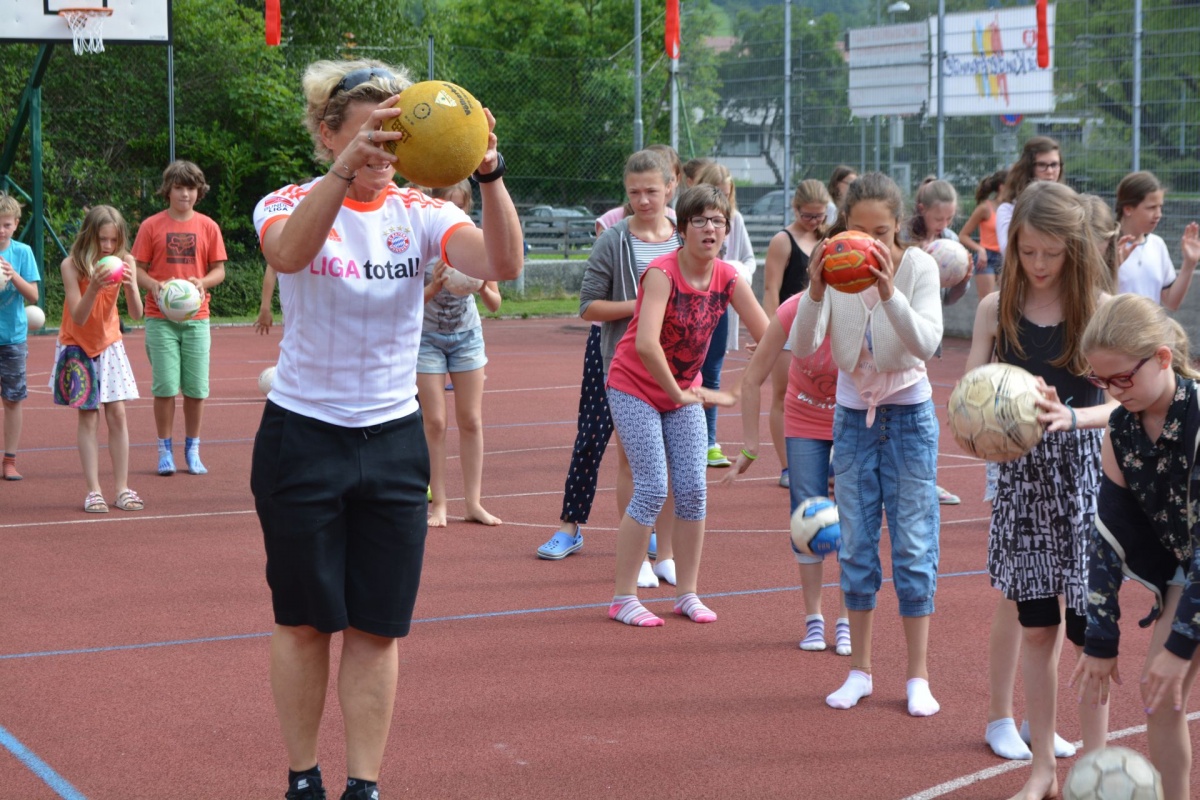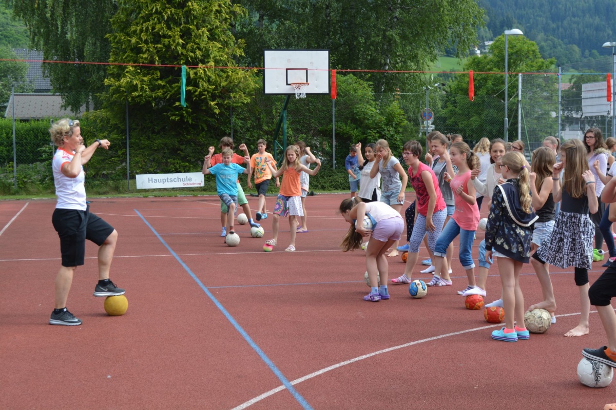 Anlässlich der EURO in Frankreich fand dieses Mal eine bewegte Pause im Zeichen des Fußballs statt. Das Thema lautete Soccer - erfreulich: Dipl.Päd. Angelika Wimmer konnte zahlreiche SchülerInnen zum Mittun mit dem Ball anregen!