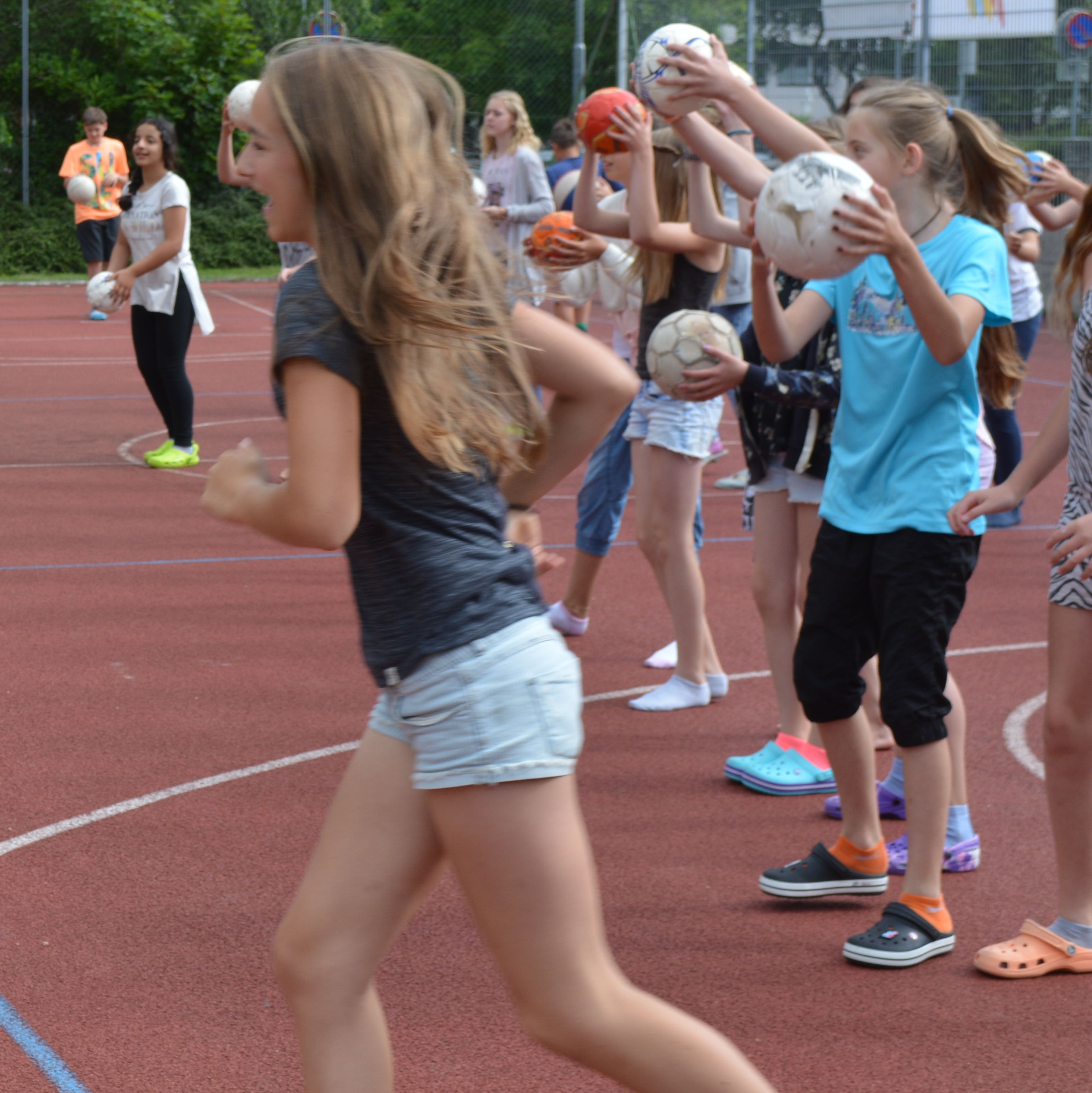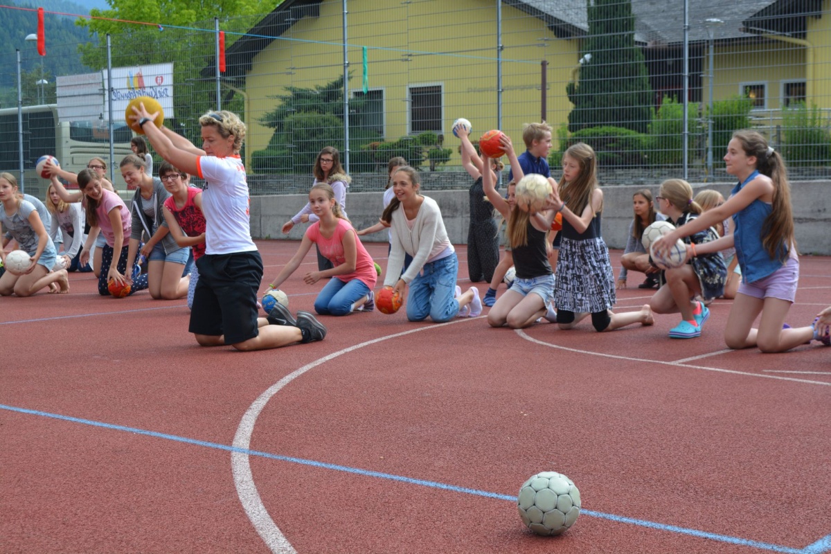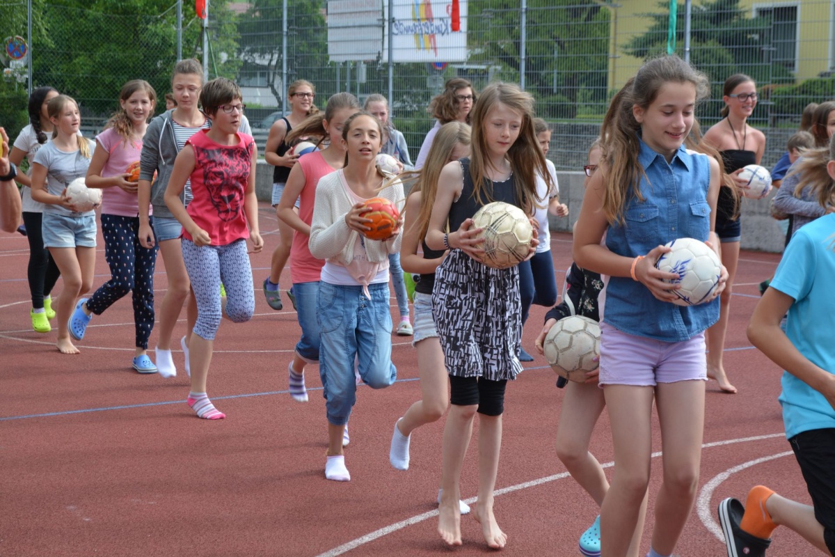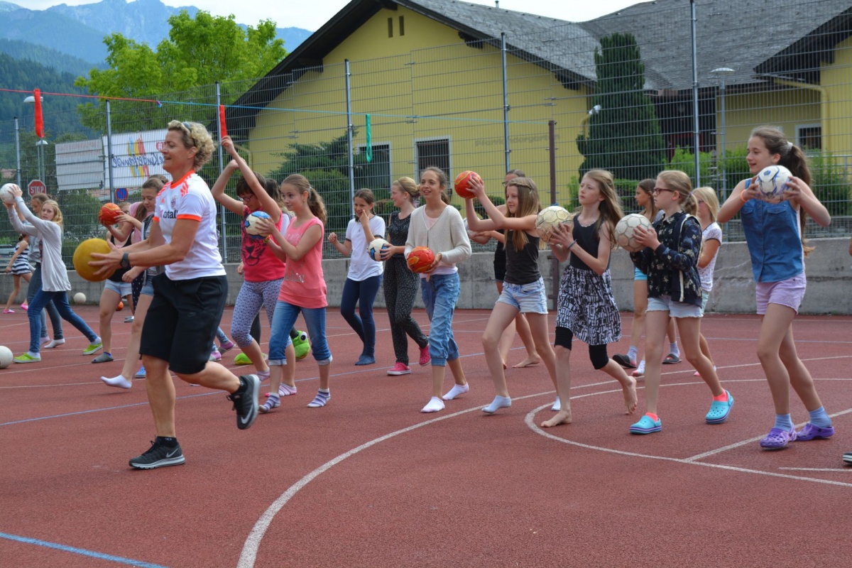 Anlässlich der EURO in Frankreich fand dieses Mal eine bewegte Pause im Zeichen des Fußballs statt. Das Thema lautete Soccer - erfreulich: Dipl.Päd. Angelika Wimmer konnte zahlreiche SchülerInnen zum Mittun mit dem Ball anregen!