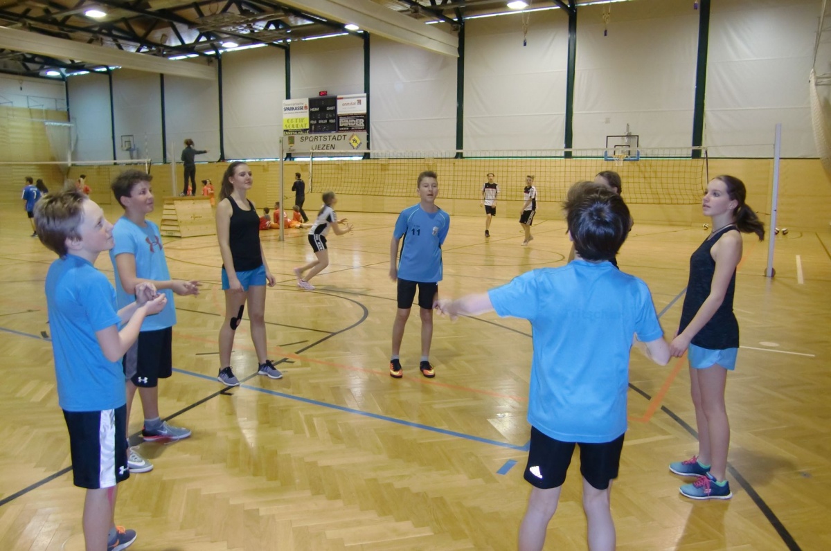 Gleich zwei Volleyballmannschaften unserer Schule nahmen an der Bezirksvolleyballmeisterschaft in Liezen teil. Bei diesem Mixed-Turnier kämpfen Mädchen und Burschen in einem Team vereint um Punkte.