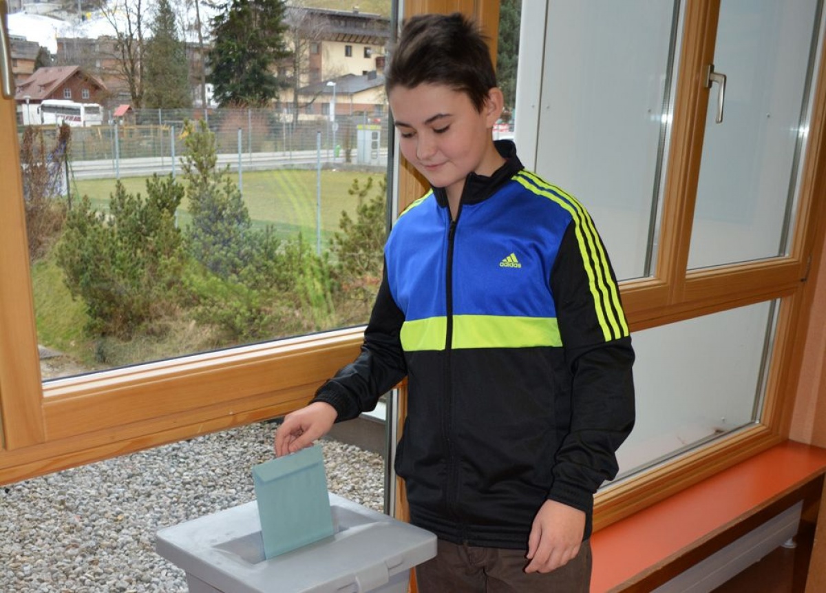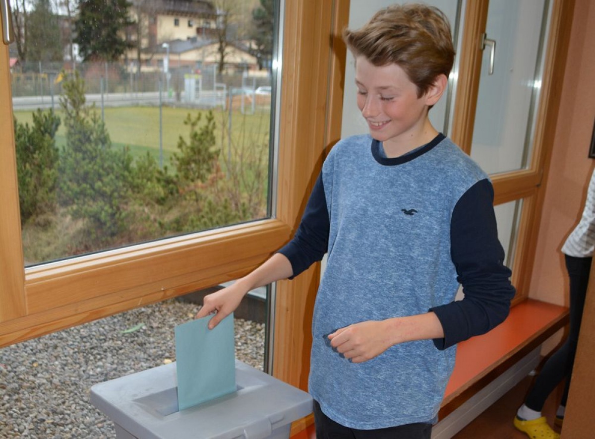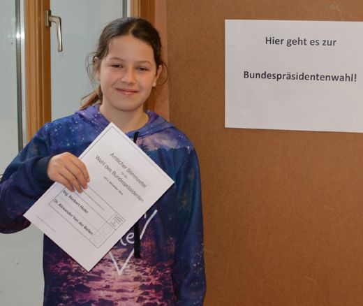 Mit den Schülerinnen und Schülern der dritten und vierten Klassen wurde der Wahlvorgang zur Bundespräsidentenwahl nachgestellt, um sie bestmöglich aufzuklären und fit für das Wählen zu machen.
