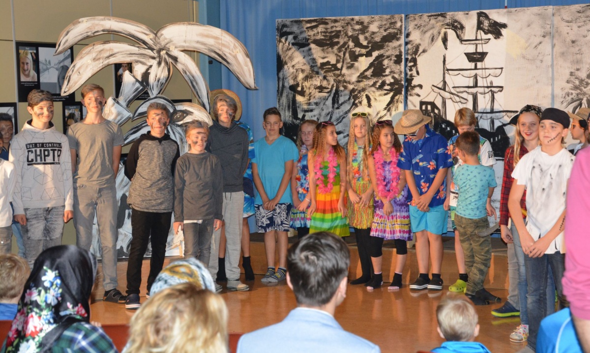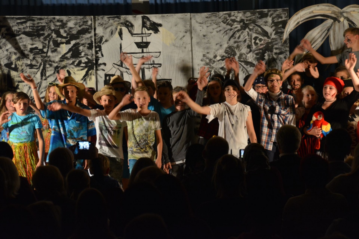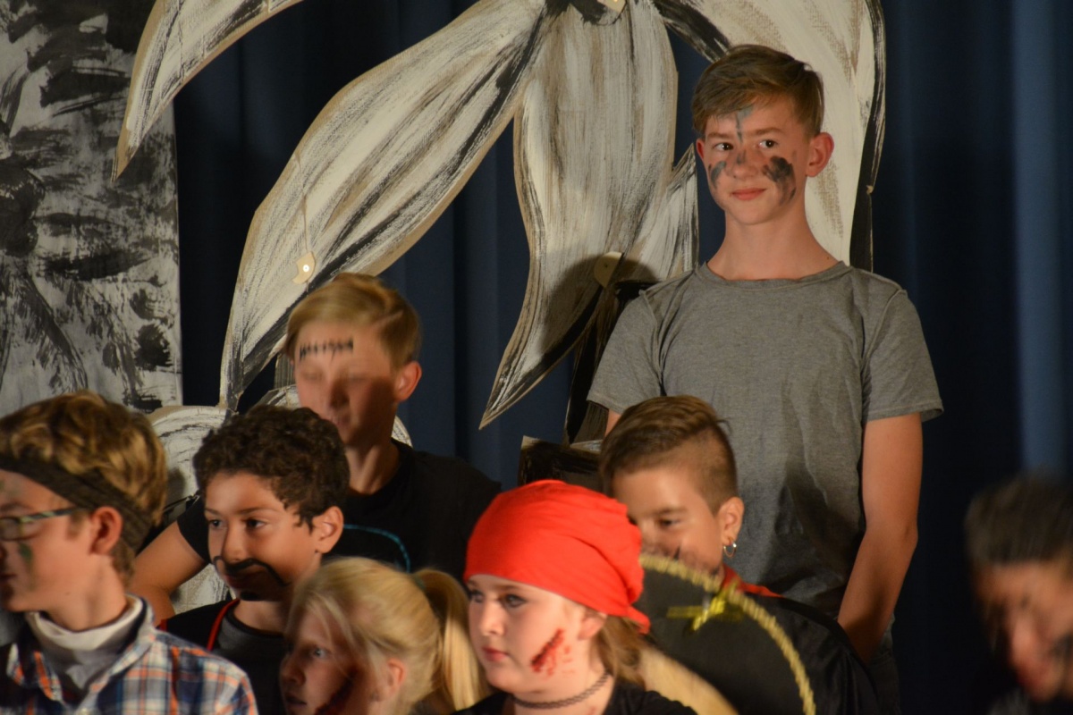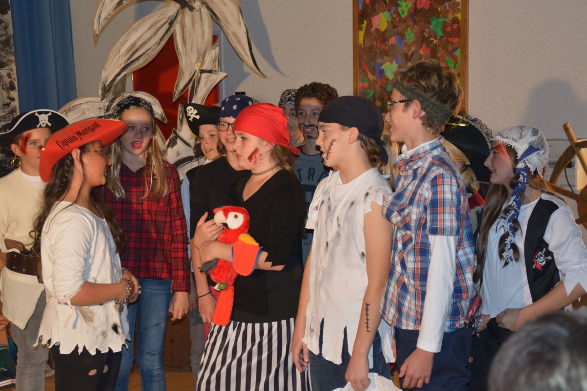 Unsere zweiten Jahrgänge, die 2.a und die 2.b Klassen führten mit großem Einsatz und beispiellosem Eifer das Musical „Pirates“ auf und bewiesen dabei neben ihrem großen Gesangs- und Schauspieltalent auch große Begeisterung für die Fremdsprache Englisch.