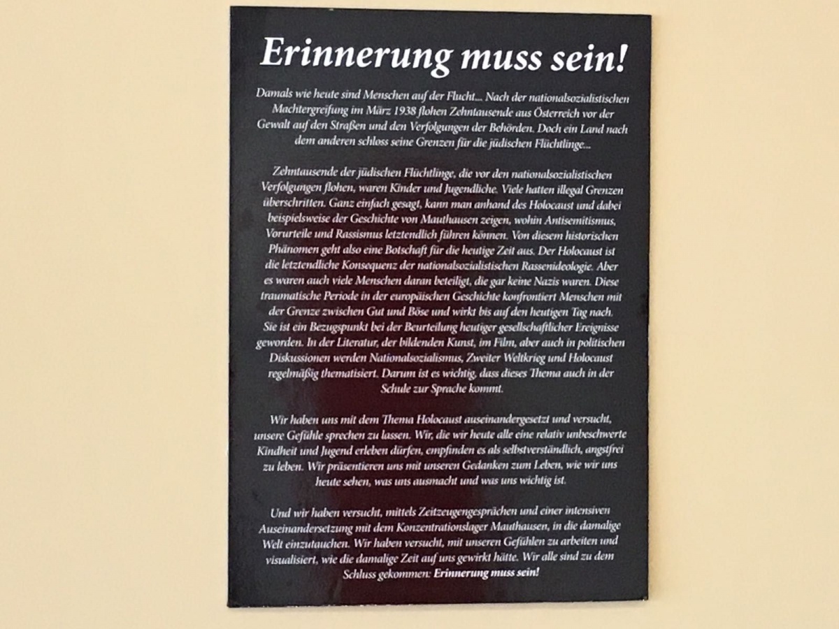 Zehntausende der jüdischen Flüchtlinge, die vor den nationalsozialistischen Verfolgungen flohen, waren Kinder und Jugendliche. Viele hatten illegal Grenzen überschritten. Ganz einfach gesagt, kann man anhand des Holocaust und dabei beispielsweise der Geschichte von Mauthausen zeigen, wohin Antisemitismus, Vorurteile und Rassismus letztendlich führen können. Von diesem historischen Phänomen geht also eine Botschaft für die heutige Zeit aus. Der Holocaust ist die letztendliche Konsequenz der nationalsozialistischen Rassenideologie. Aber es waren auch viele Menschen daran beteiligt, die gar keine Nazis waren. Diese traumatische Periode in der europäischen Geschichte konfrontiert Menschen mit der Grenze zwischen Gut und Böse und wirkt bis auf den heutigen Tag nach. Sie ist ein Bezugspunkt bei der Beurteilung heutiger gesellschaftlicher Ereignisse geworden. In der Literatur, der bildenden Kunst, im Film, aber auch in politischen Diskussionen werden Nationalsozialismus, Zweiter Weltkrieg und Holocaust regelmäßig thematisiert. Darum ist es wichtig, dass dieses Thema auch in der Schule zur Sprache kommt.