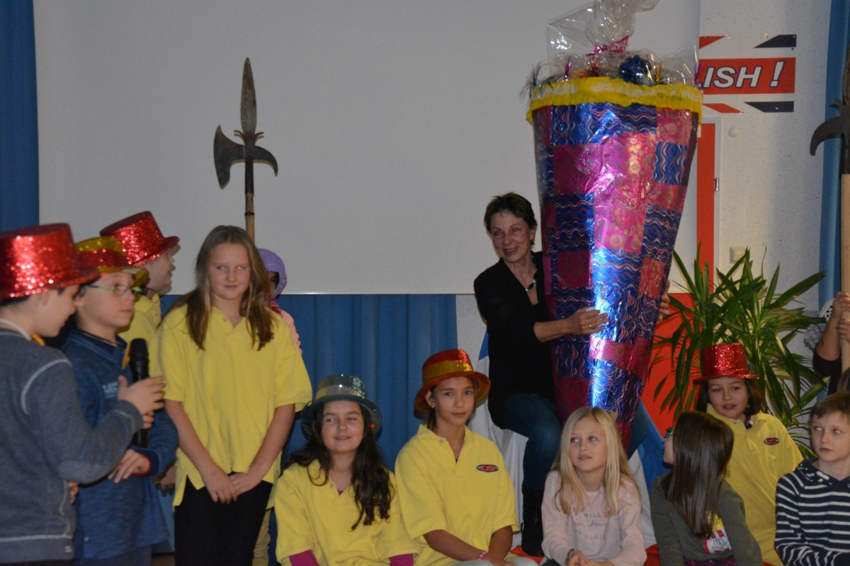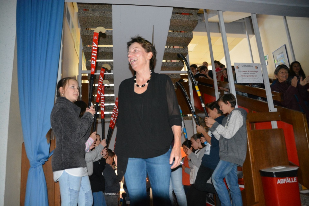 Da durften weder sportliche Einlagen mit den Hockey-Schlägern, noch Englischsprachiges oder Szenen aus der Ersten Hilfe fehlen. Ein Rückblick in Bildern, die das vielfältige Schaffen unserer Kollegin, die seit 1979 an unserer Schule wirkte und eine tragende Säule im Englisch und Sportunterricht für uns war, rundete diese berührende Feier ab. Danke Karin für deinen vorbildlichen Einsatz und alles Gute für deinen weiteren Lebensweg im wohlverdienten Ruhestand!