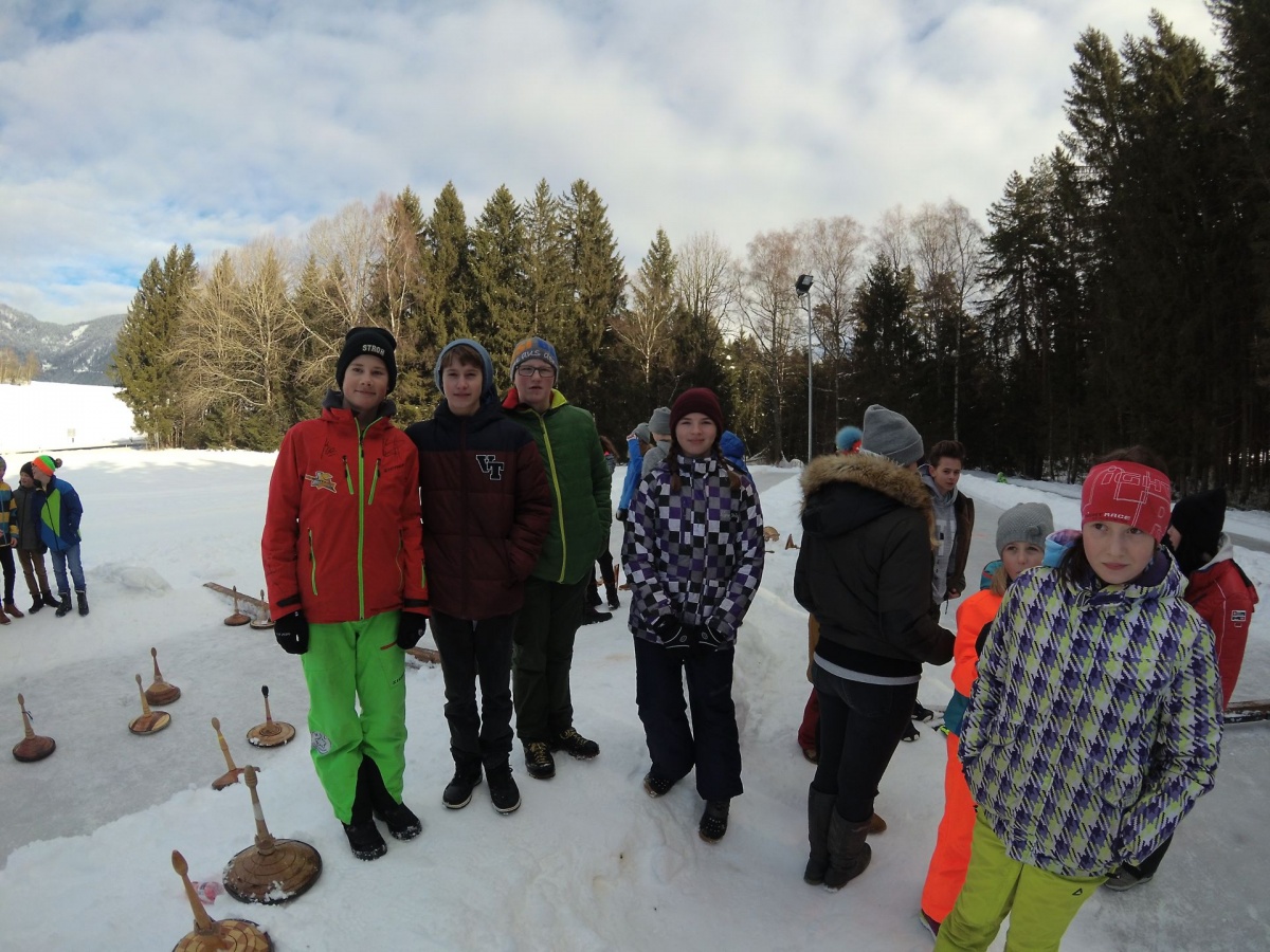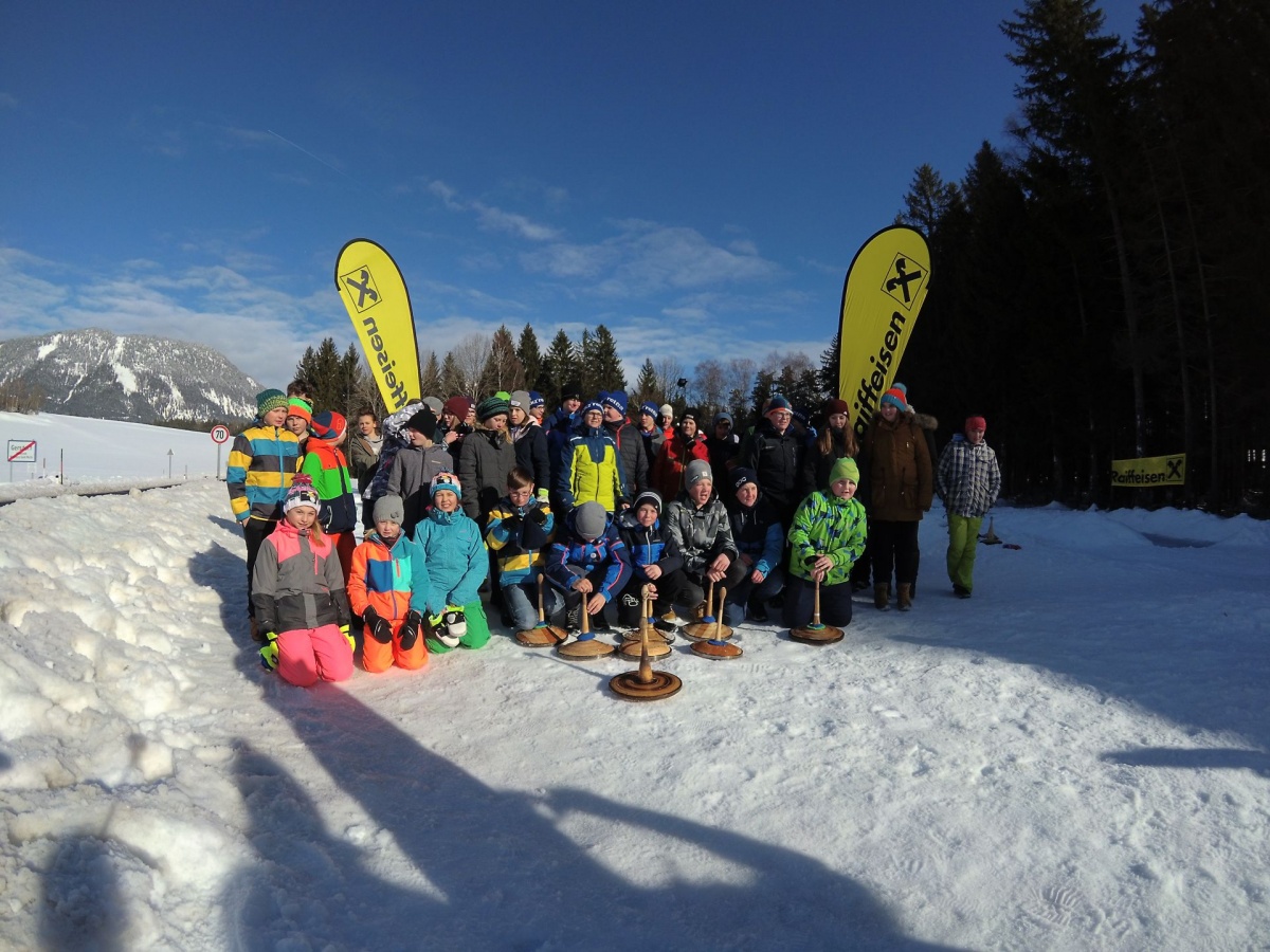 Bei herrlichem Wetter fand am 24. Jänner 2018 ein Eisstock-Turnier auf den Eisbahnen des SV Mitterberg statt. Die NMS Erzherzog Johann nahm mit vier Mannschaften zu je 6 Schülerinnen und Schülern daran teil.