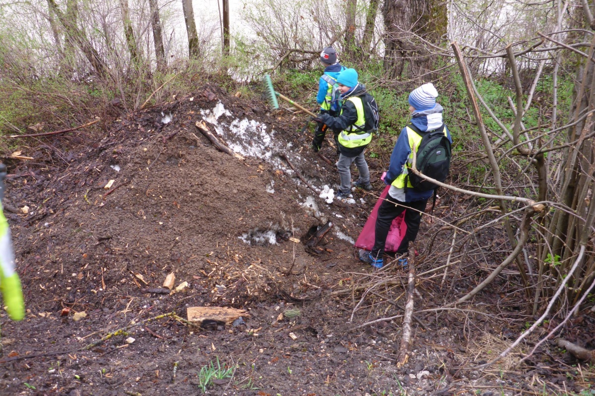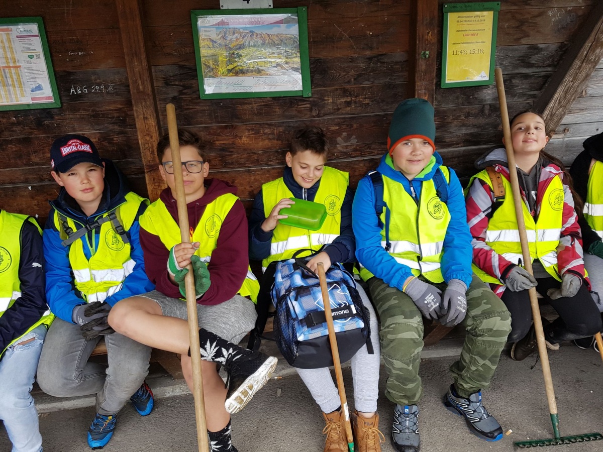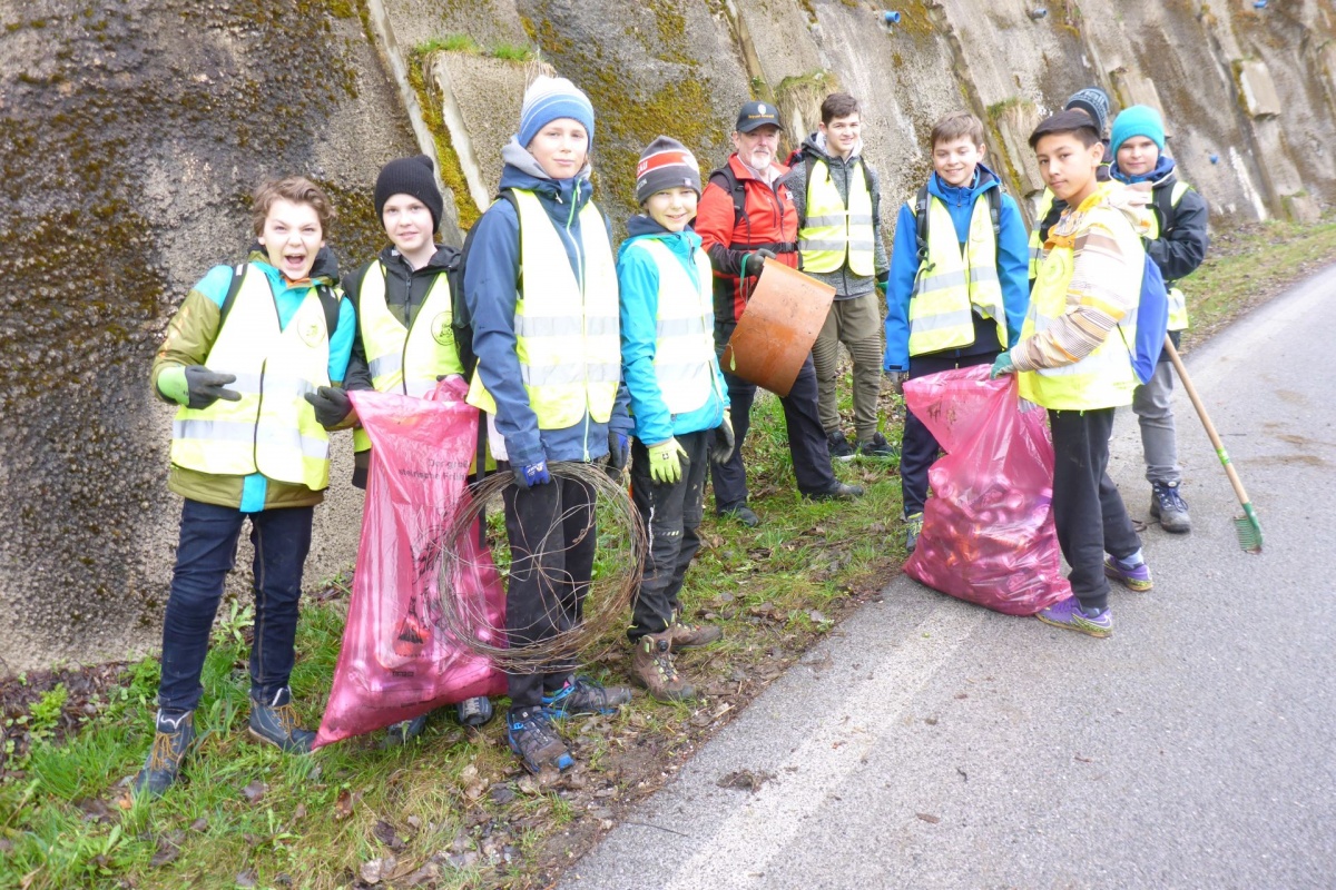Bei äußeren widrigen Bedingungen ging unsere Jugend motiviert zu Werke und startete die Reinigungsaktion unter der bewährten Führung unserer Berg- und Naturwacht aufgeteilt in zwei Gruppen direkt bei der Schule. Von dort aus wurden Böschungen zwischen Congresszentrum und Kläranlage sowie die beiden Ennsufer Richtung Westen bis hin bis zum Diakonissenkrankenhaus gereinigt. Zu den am häufigsten aufgegriffenen Fundstücken zählten diesmal Pet-Flaschen und Alu-Dosen. Ein wahres Arsenal davon wurde auf Höhe der Zufahrt von der B320 zur Athletic-Area entdeckt. Von einem dem Verfall preisgegebenen, teilweise knietief mit leeren Alu-Bierdosen befüllten Schuppen erstreckte sich eine wahre Leichtmetallspur über unwegsames, steil abfallendes Gelände bis hin zur Böschungsbefestigung. Schnell wurde eine „Transportkette“ gebildet und so ein Gutteil dieser Umweltverschmutzung beseitigt. Schlussendlich endete der erlebnisreiche Putztag bei der Pizzeria „Bahir“, wo die Schüler ihr wohlverdientes Mittagessen einnehmen konnten. Ein Dank für die Essenseinladung ergeht in diesem Zusammenhang an die Stadtgemeinde Schladming.