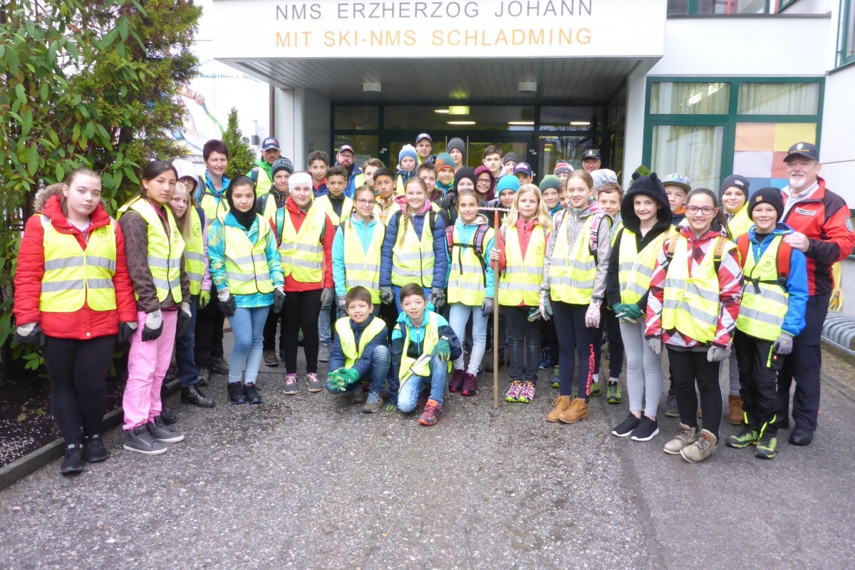 In den Dienst der guten Sache stellten sich auch heuer wieder die Schüler und Schülerinnen der 2a und 2b Klasse der NMS Erzherzog Johann als es hieß: „Steirischer Frühjahrsputz 2018 – Wir leisten einen Beitrag zu einem lebenswerten, sauberen Schladming!“