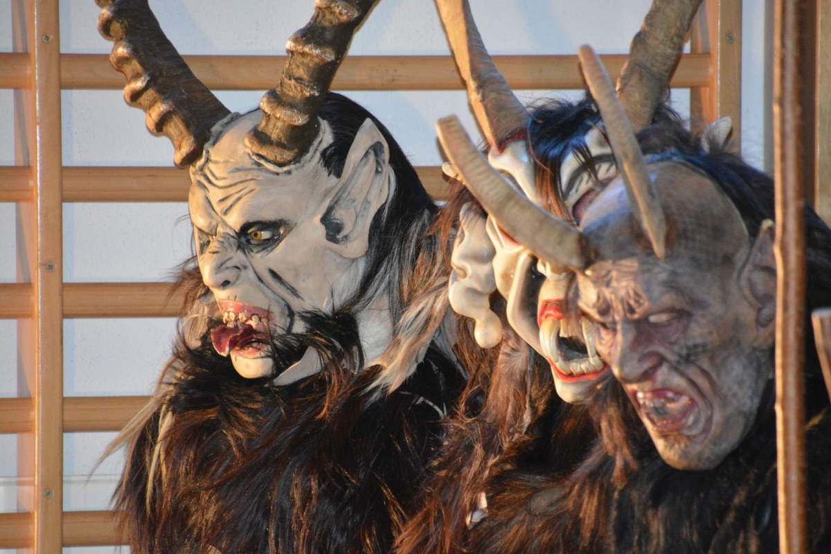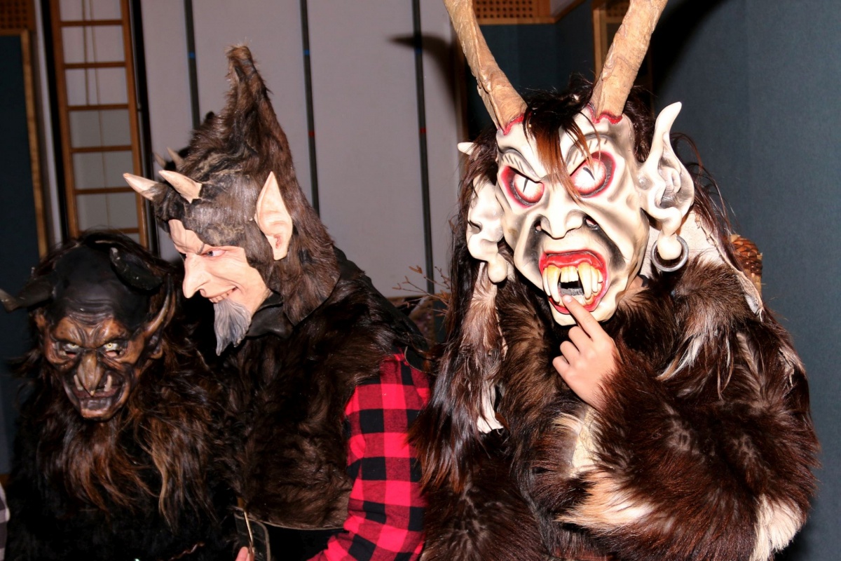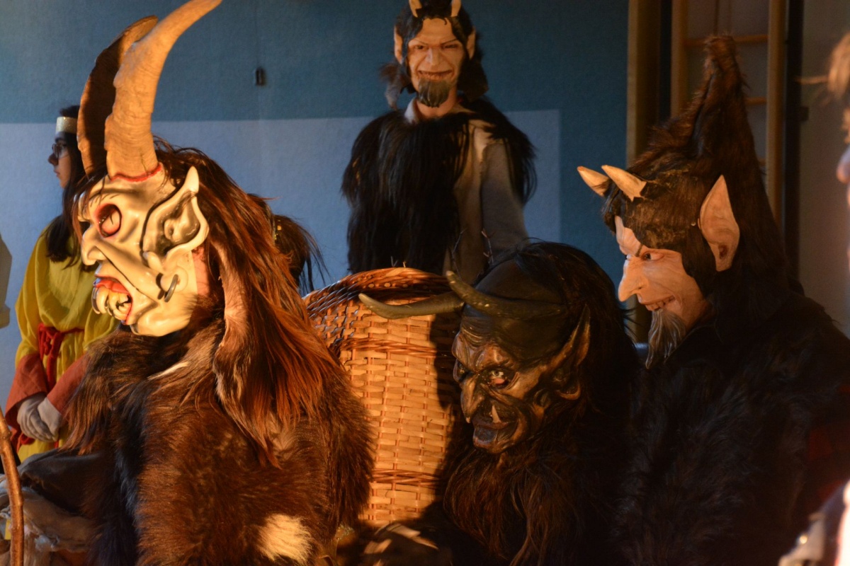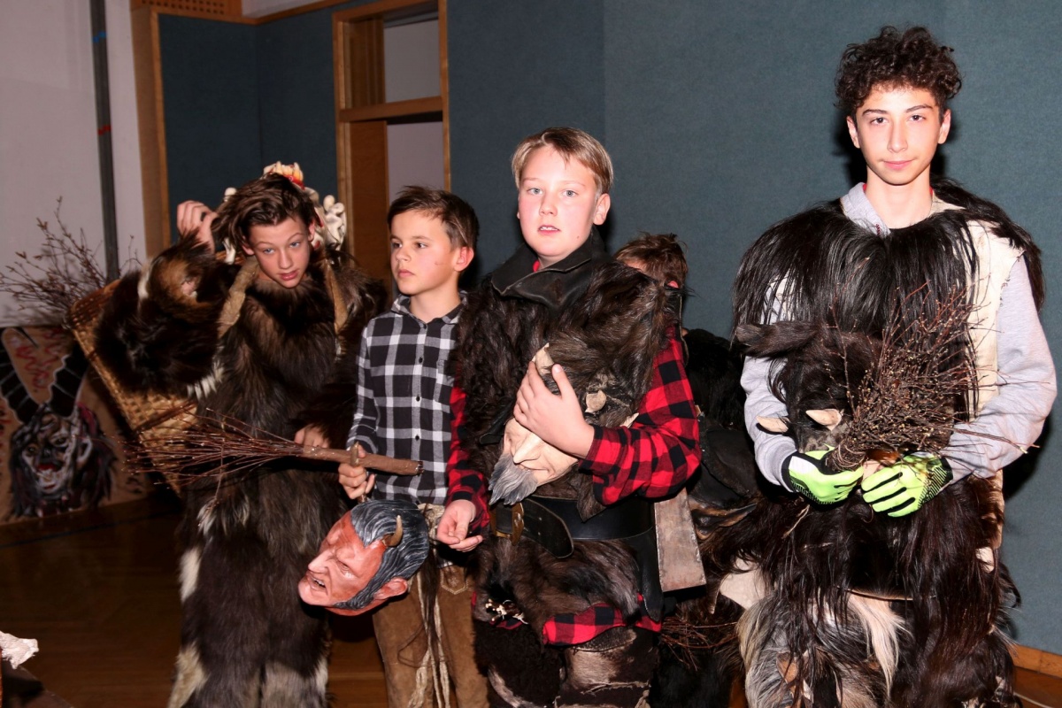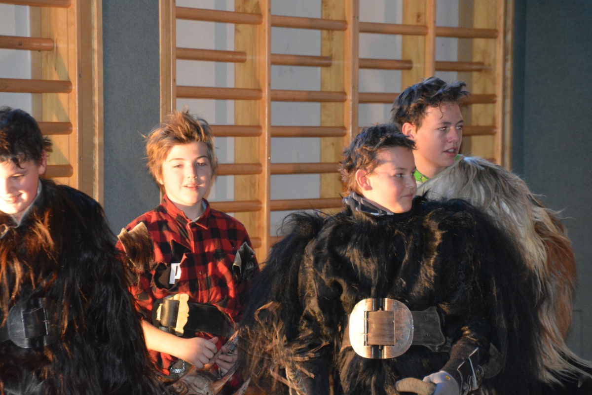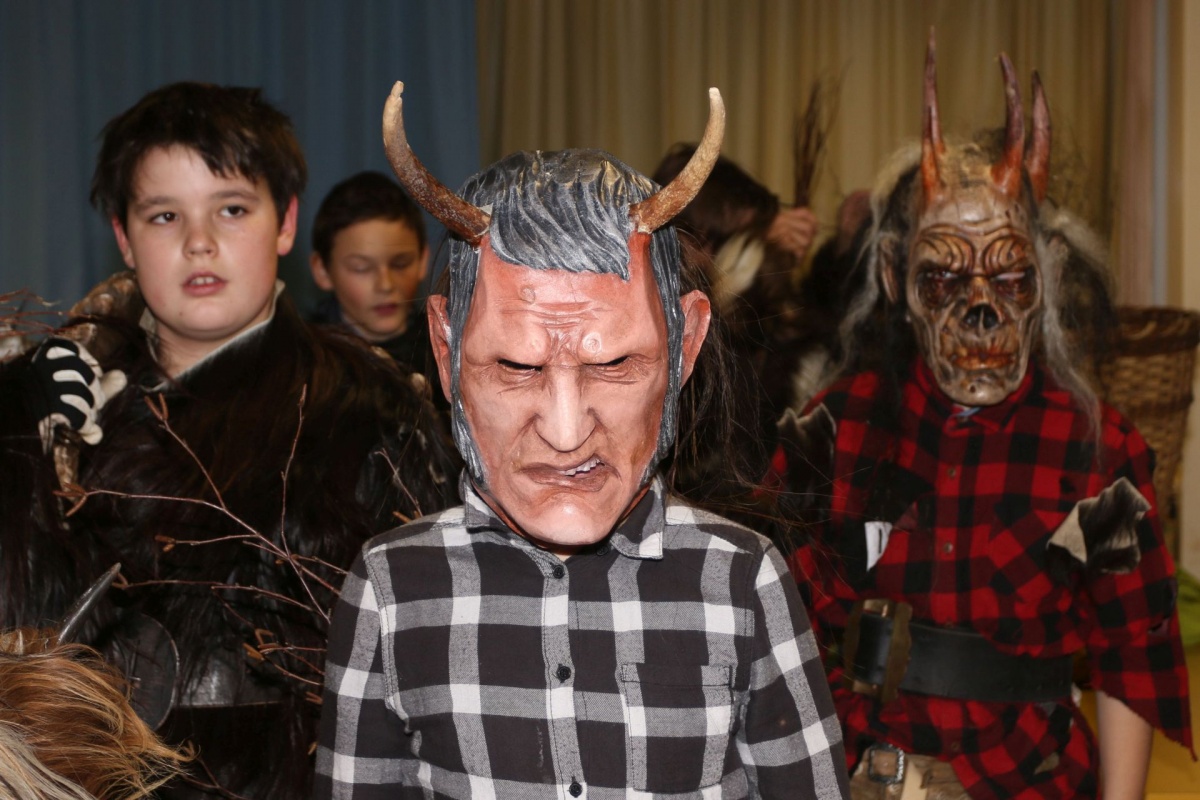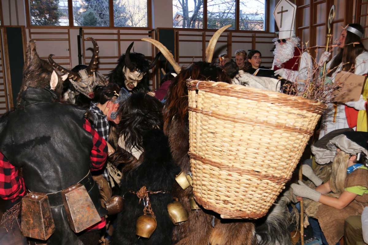 Auch die LehrerInnen bekamen etwas (ab), stellvertretend für sie "durfte" Leiterstellvertreter A. W., BEd MSc einige Streicheleinheiten der hauseigenen Krampusse über sich ergehen lassen.
