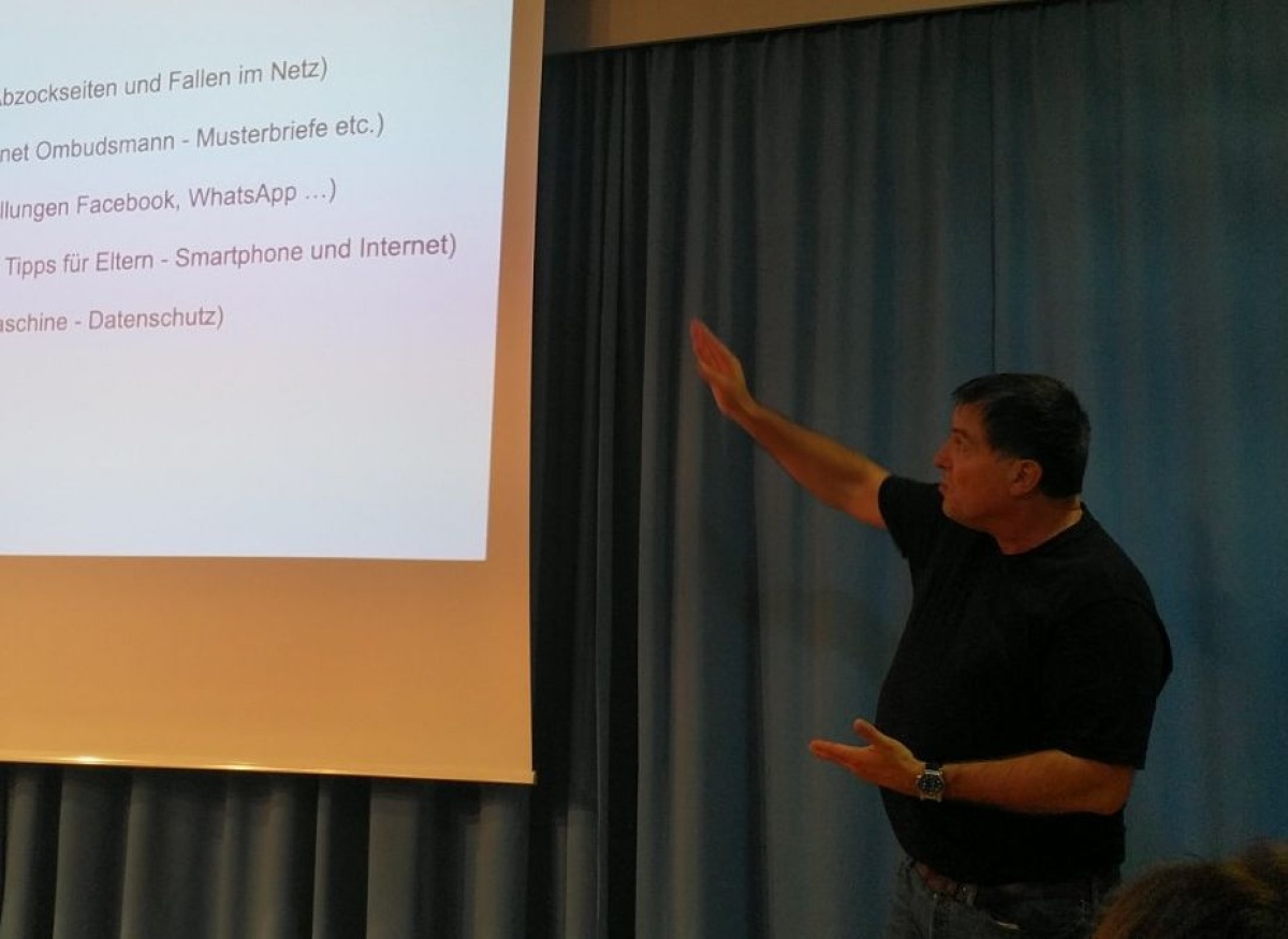 Der Medienexperte Klaus Strassegger hielt vor zahlreich erscheinenden Eltern einen interessanten Abend über die Nutzung und die Gefahren verschiedenster Medien und Apps, welche Kinder und Erwachsene "selbstverständlich" nutzen. Sie bedenken dabei meistens nicht, welche Informationen die diversen Betreiber von diesen Programmen und Plattformen von jedem bekommen und verwenden (können).