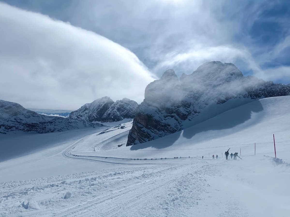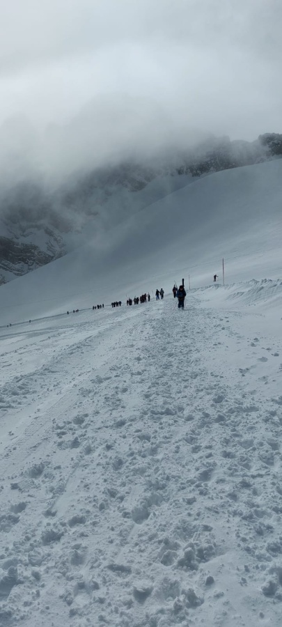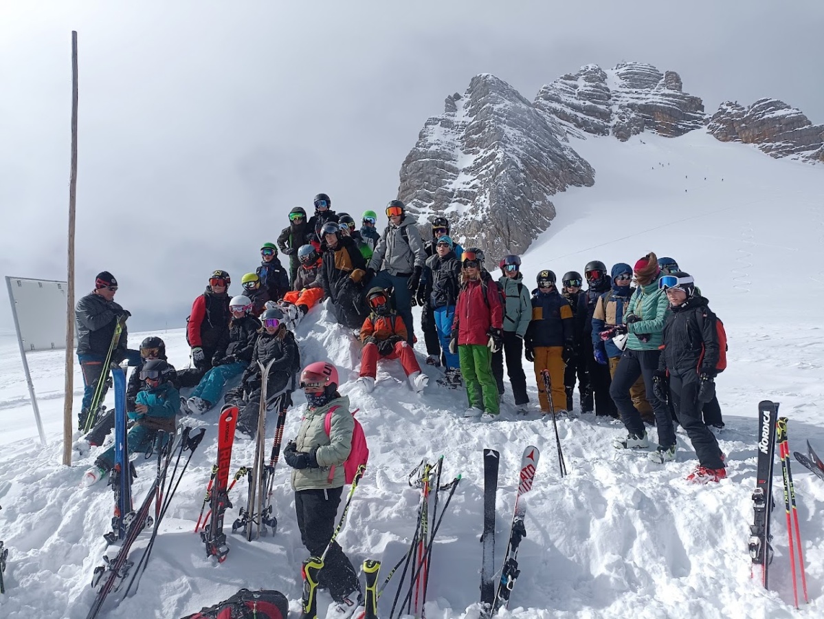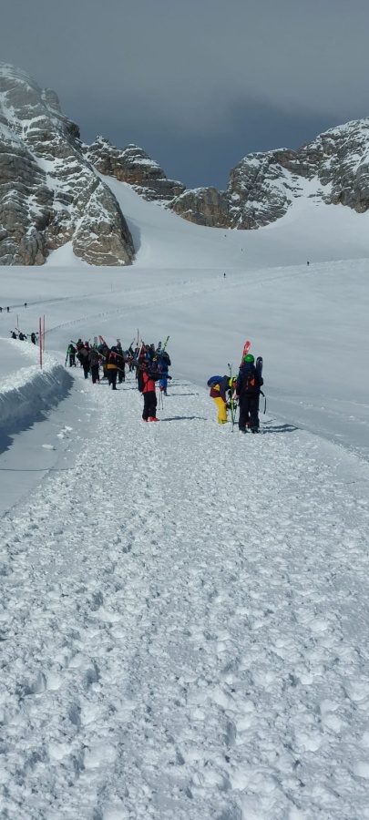 Just in jenem denkwürdigen Jahr, in dem erstmals seit der touristischen Erschließung des Dachsteinmassivs mit Rückbauarbeiten das Ende der alpinen Ski-Ära eingeläutet wurde, genossen über dreißig Schüler der dritten und vierten Klassen unserer Mittelschule am Dienstag, dem 21. März bei besten äußeren Bedingungen die eindrucksvolle Tour durch die Gletscherlandschaft.