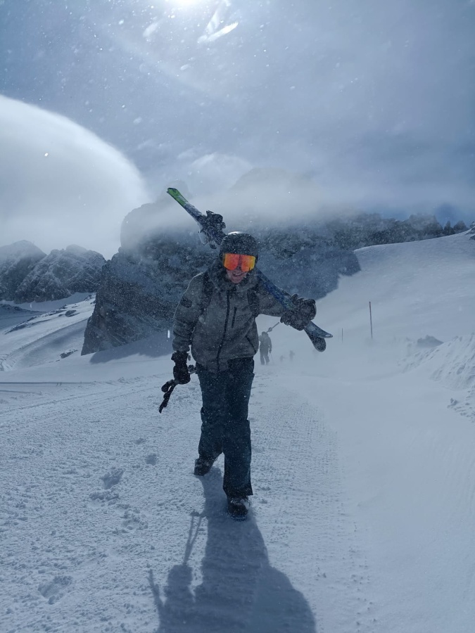 Für die Strapazen des Aufstieges wurden wir mit einer Skiabfahrt auf frisch gefallenem Schnee und zwei ausgedehnten Pausen auf der Simonyhütte und der Gjadalm belohnt.