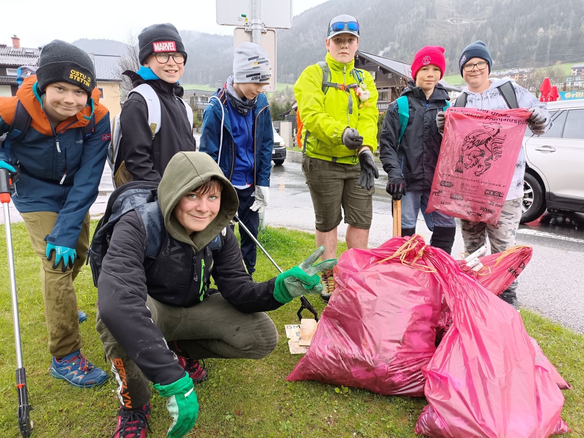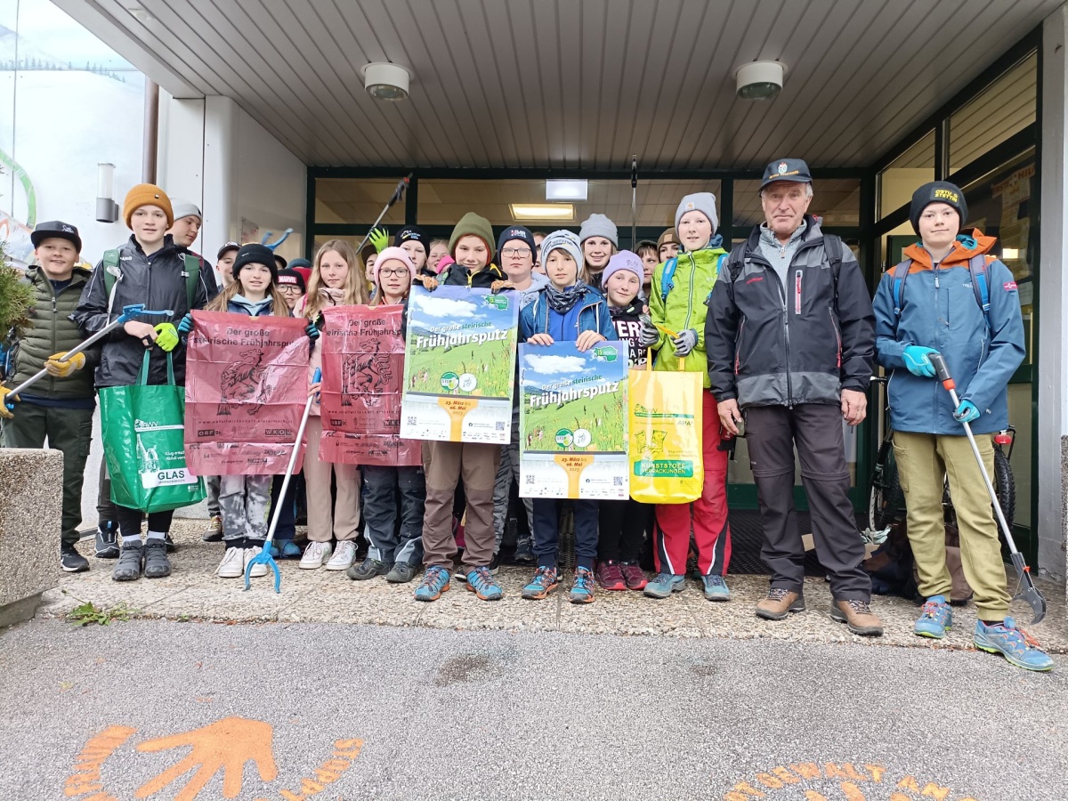 „Wie jedes Jahr waren die zweiten Klassen der MS Erzherzog Johann Schladming mit ihren Lehrern und der Berg- und Naturwacht Schladming einen ganzen Vormittag unterwegs, um im Rahmen der Aktion „Steirischer Frühjahrsputz“ Müll zu sammeln.
