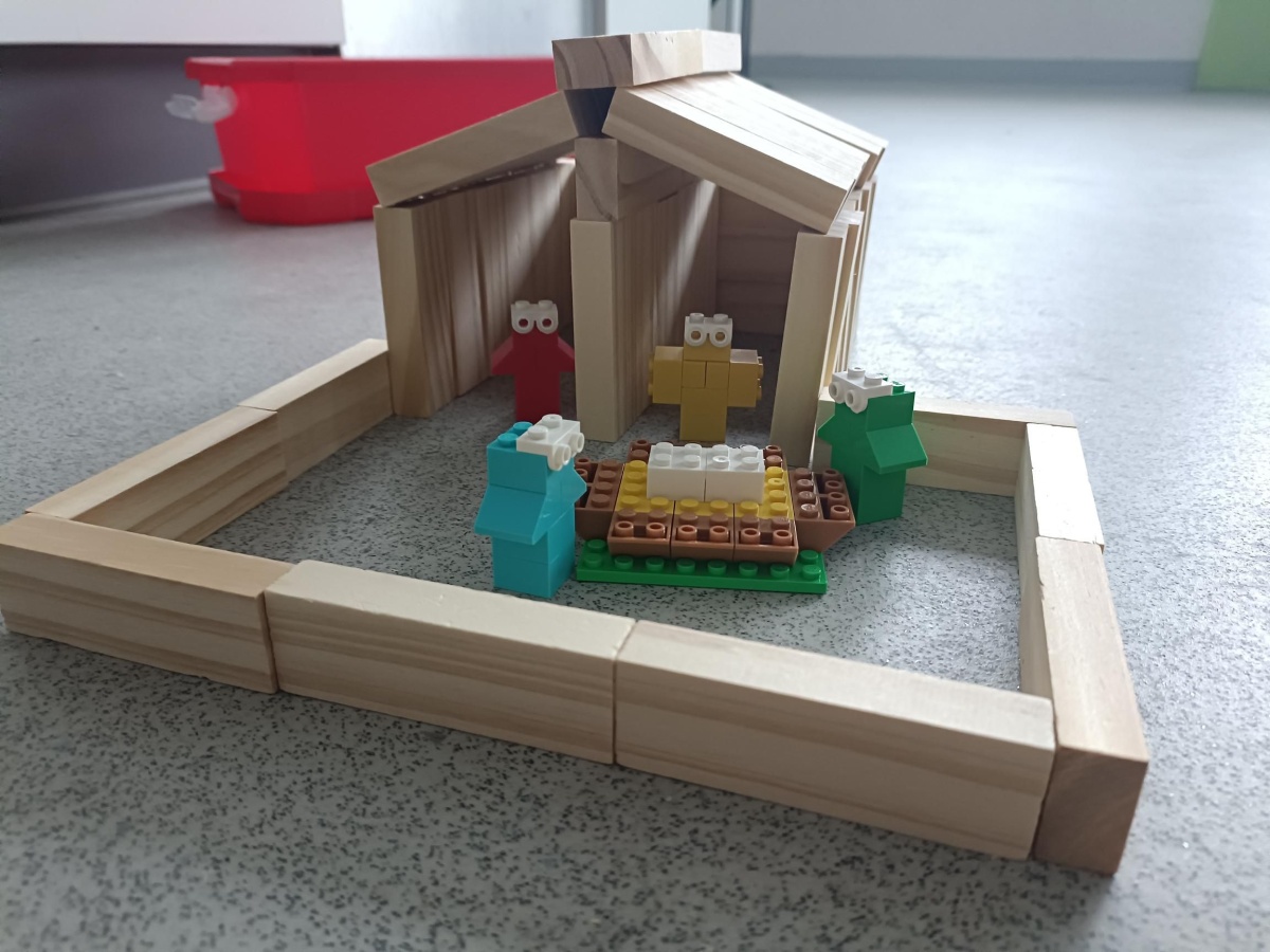 Im katholischen Religionsunterricht der 4a und 4b-Klasse stellten die Kinder mit Legosteinen passende Szenen nach, die zur Erzählung, wie die Hirten zur Krippe gekommen sind, passten.
