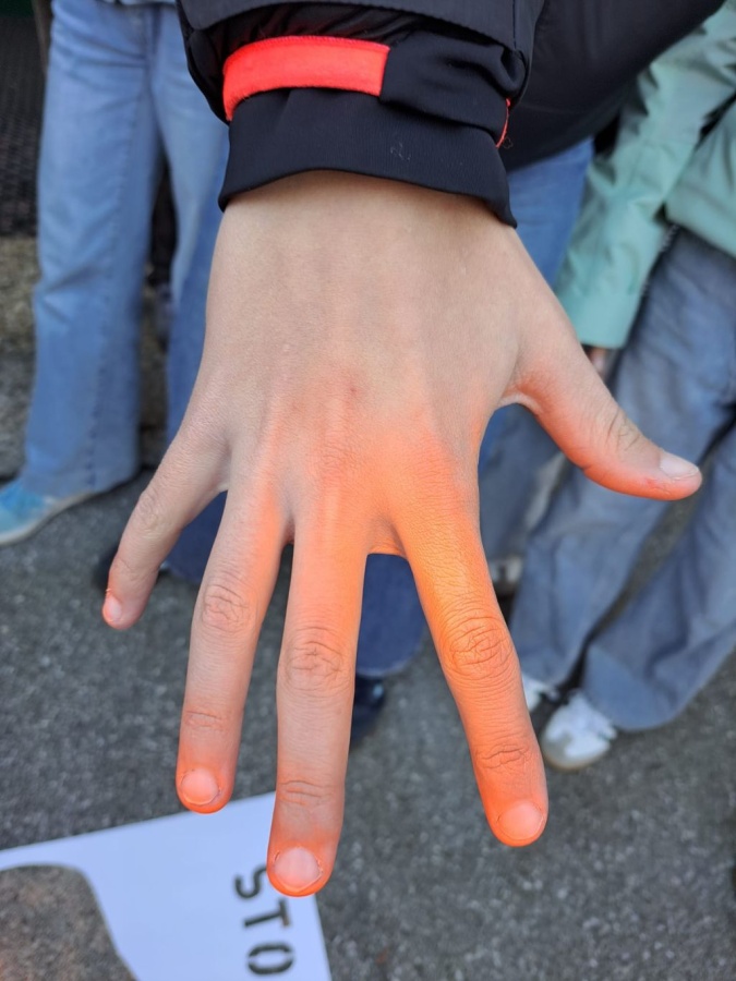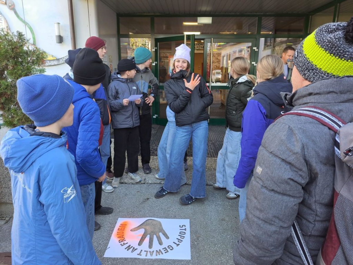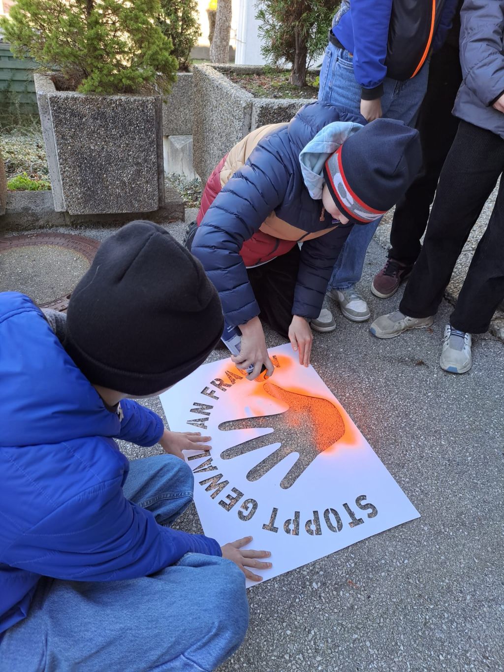 Auch in diesem Jahr beteiligten sich wieder Schülerinnen und Schüler der 3. Klassen an der Sprayaktion zum Thema „Stoppt Gewalt an Frauen“.