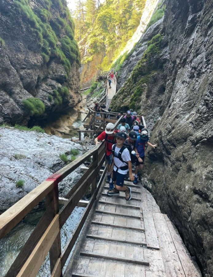 Ein besonderer Höhepunkt war zweifellos der Rafting-Ausflug. Ausgerüstet mit Schwimmwesten, Helmen und Neoprenanzügen ging es für die Schülerinnen und Schüler aufs Wasser. Unter der Anleitung erfahrener Guides paddelten die Schüler gemeinsam durch die spritzigen Wellen der Enns. Auch ein Tenniskurs war Teil des Programms, bei dem viele Schülerinnen und Schüler zum ersten Mal diese Sportart ausprobieren konnten. Den Abschluss der Projekttage bildete eine Wanderung durch die Wörschachklamm bis zum Spechtensee. Dort nutzten viele die Gelegenheit, sich an diesem heißen Tag im kühlen Wasser zu erfrischen.