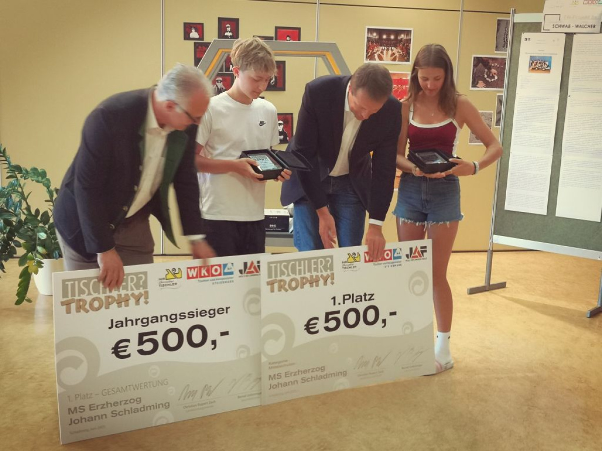 Ein Einstieg, der sich sehen lassen kann! Bei ihrer allerersten Teilnahme an der Tischler Trophy gelang der Mittelschule Erzherzog Johann Schladming ein beeindruckender Doppelsieg. Sowohl der 1. Platz in der Kategorie Mittelschulen als auch der Jahresgesamtsieg unter 24 teilnehmenden Schulen aus der ganzen Steiermark gingen an das engagierte Team aus dem Bezirk.