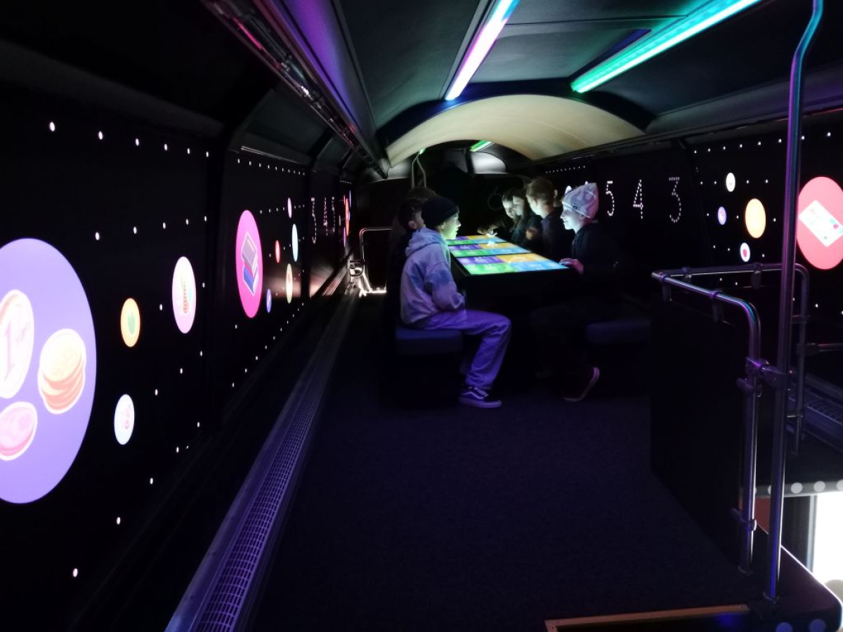 In diesem umgebauten Doppeldeckerbus konnten die SchülerInnen der 2. und 3. Klassen an sieben interaktiven Stationen - WerteKoffer, WeltReise, AusgabenCheck, Job-O-Mat, MarktHandel, FinanzDuell und GeldLabyrinth - spielerisch Finanzwissen erwerben.