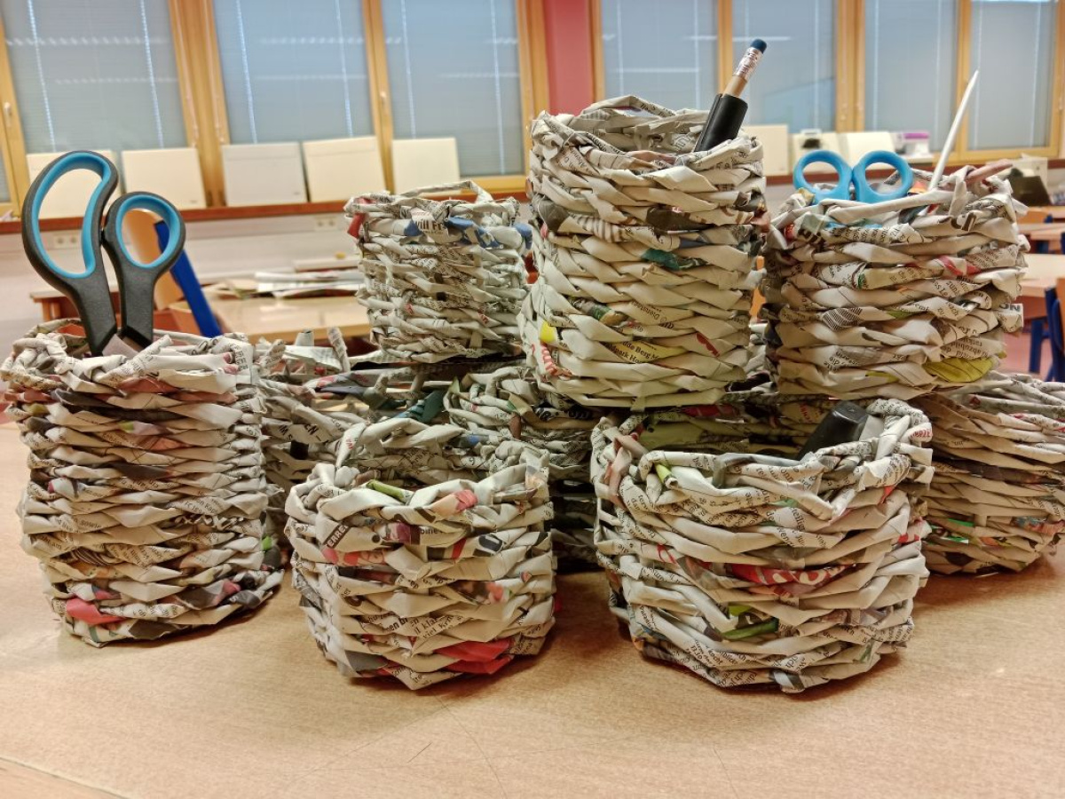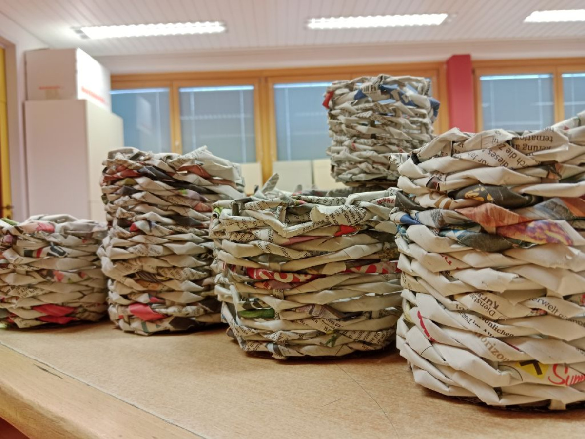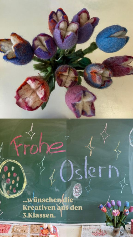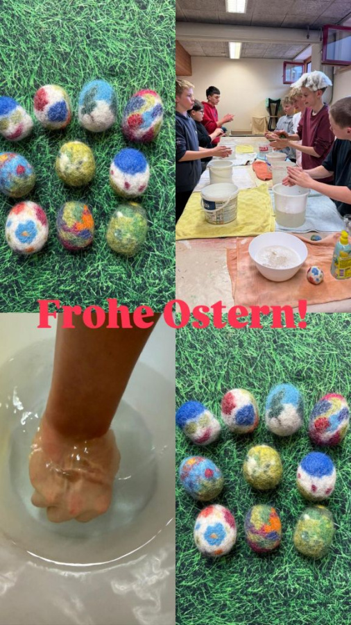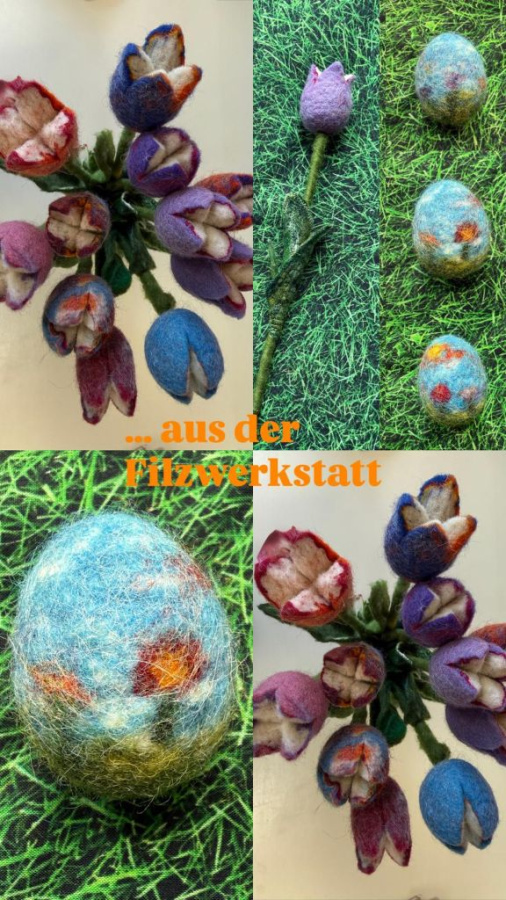 Technik und Design & Schwerpunkt Kreativität und Technik Einblicke in die Werke aus den Unterrichtsfächern Technik und Design & Schwerpunkt Kreativität und Technik: Teufelsknoten, Blumen und Ostereier aus Filz, geflochtene Körbe aus Papier