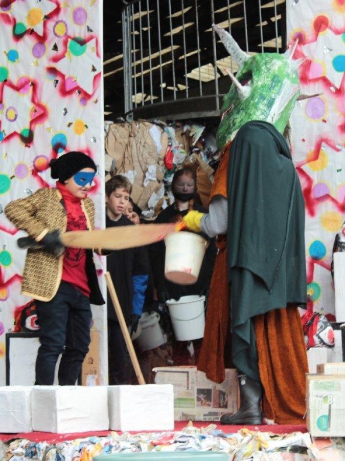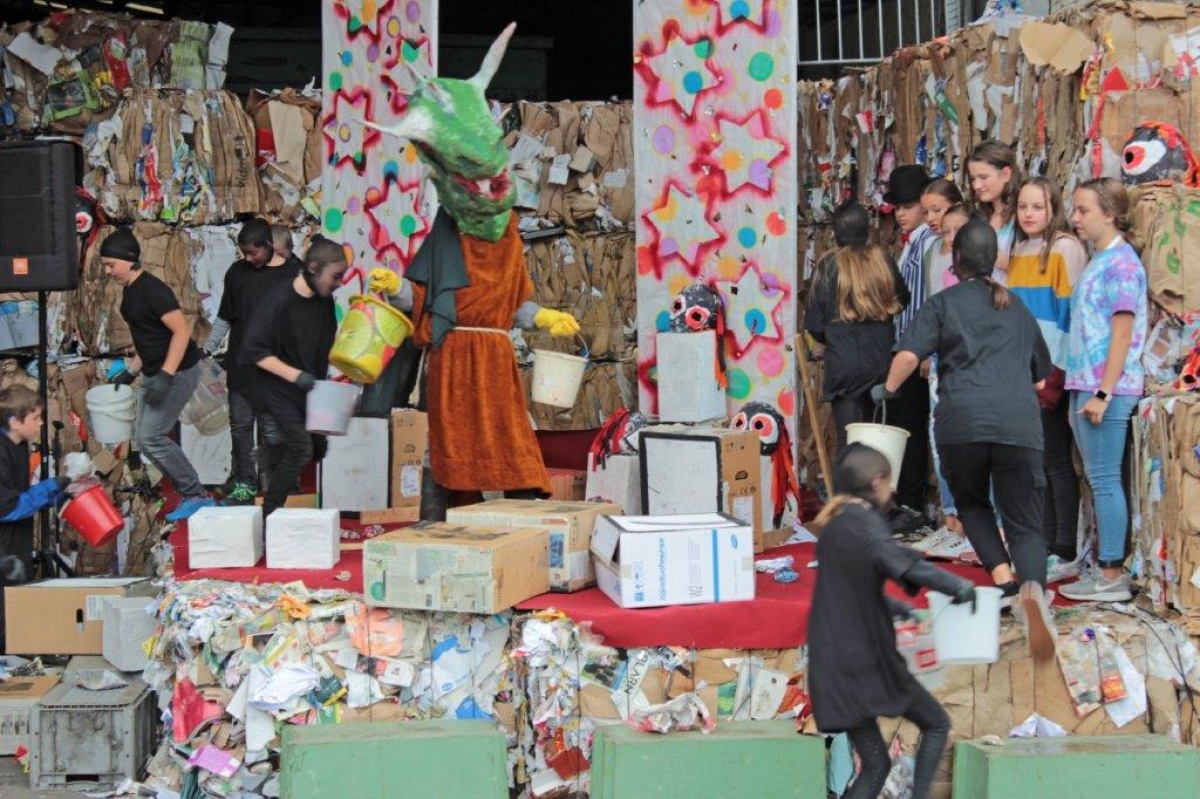 Gespielt wurde im Abfallwirtschaftszentrum Aich. Der Anlass war die Pensionierungsfeier von Herrn Ing. Hans Hinterschweiger. Er war langjähriger Leiter des Abfallwirtschaftsverbandes Schladming und suchte immer wieder Kontakt zu Schladminger Pflichtschulen. In Zusammenarbeit mit Herrn Ing. Anton Streicher wurden und werden seit vielen Jahren Projekte wie die jährliche Ennsufer-Säuberungsaktion und Exkursionen zur Abfallverwertungsanlage Aich organisiert.