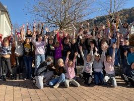 50 Mädchen und Burschen aus den ersten bis vierten Klassen der Mittelschule 1 und der EHJ-Mittelschule treffen sich jeden Freitag in der 6. Stunde zum gemeinsamen Singen im Schulchor, wenn (fast) alle anderen Schüler nach Hause gehen. - Noch Unterricht oder schon Wochenende? Irgendwo dazwischen gestaltet sich unsere Chorarbeit. Wir stimmen uns mit Bewegung und musikalischen Aufwärmübungen ein, bevor wir mit der Probenarbeit beginnen.