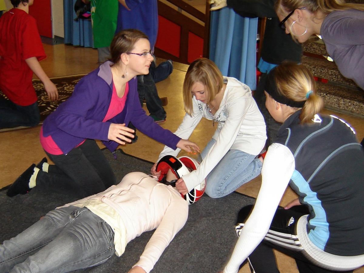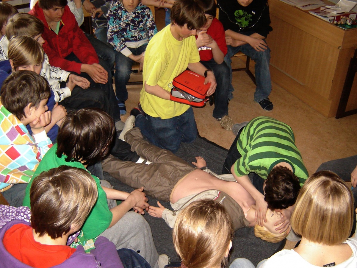 Seit Jahren werden unsere Schülerinnen und Schüler in einem Erste-Hilfe-Kurs ausgebildet. Neben dem Erwerb der Grundkenntnisse - wie verhalte ich mich in Notfällen richtig - werden auch Informationen über die öffentlichen Einrichtungen weiter gegeben.